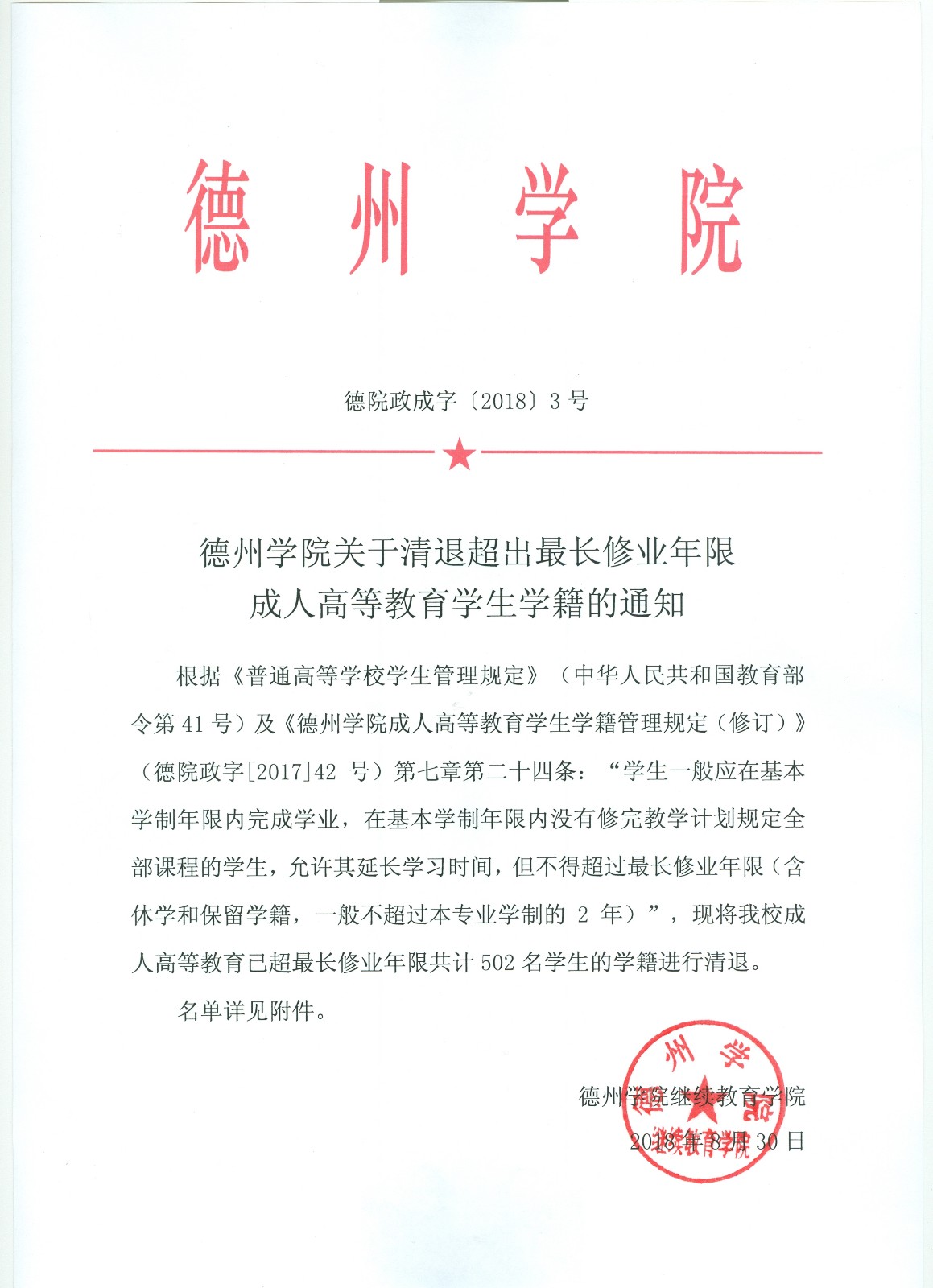 太阳成tyc9728集团关于清退超出最长修业年限 成人高等教育学生学籍的通知